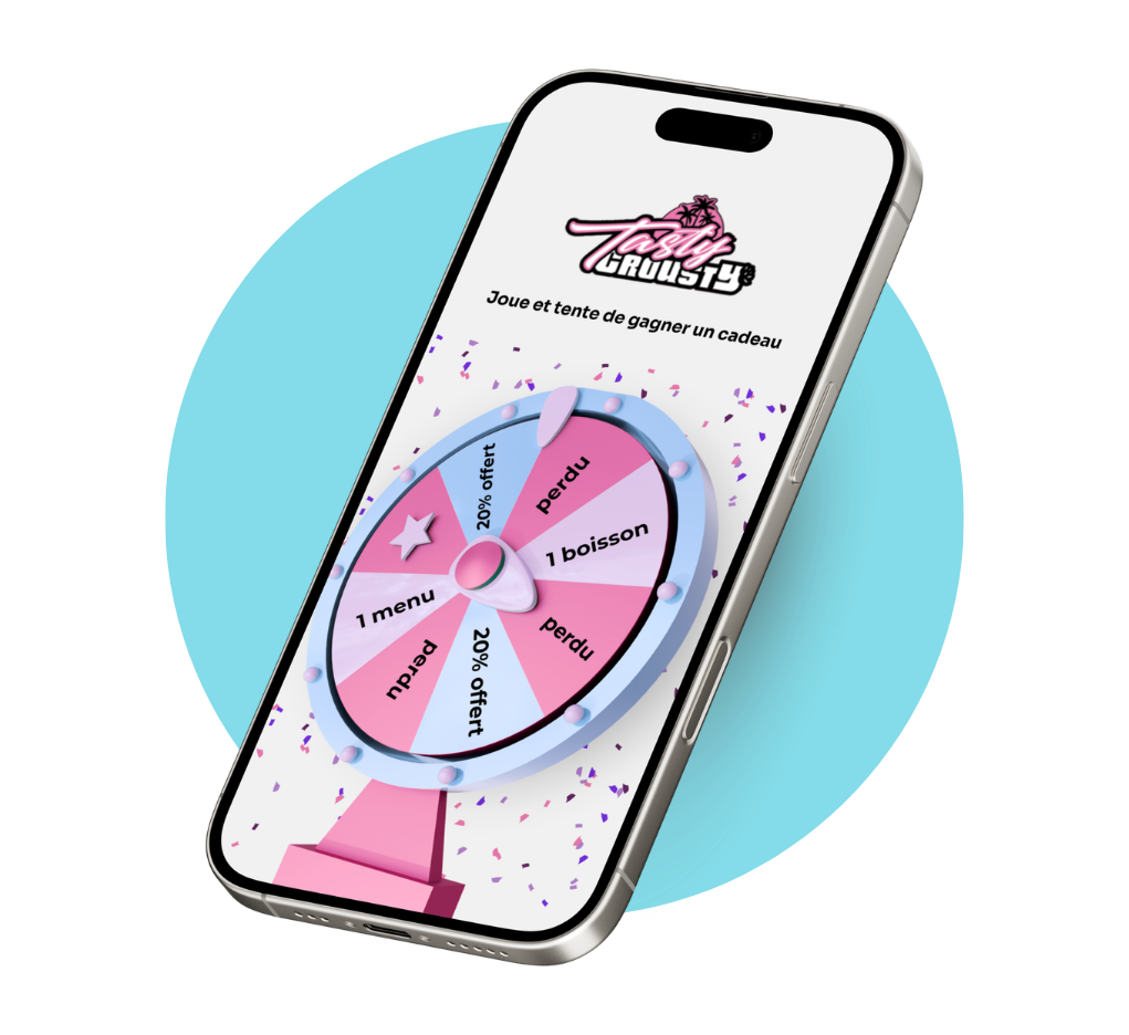 La stratégie est déployée dès l’ouverture : des QR codes placés dans la file d’attente, des lots attractifs pour donner envie de jouer, et une équipe qui embarque le concept naturellement. Le client scanne, tourne la roue le temps de récupérer sa commande, et laisse un avis pour récupérer son gain.